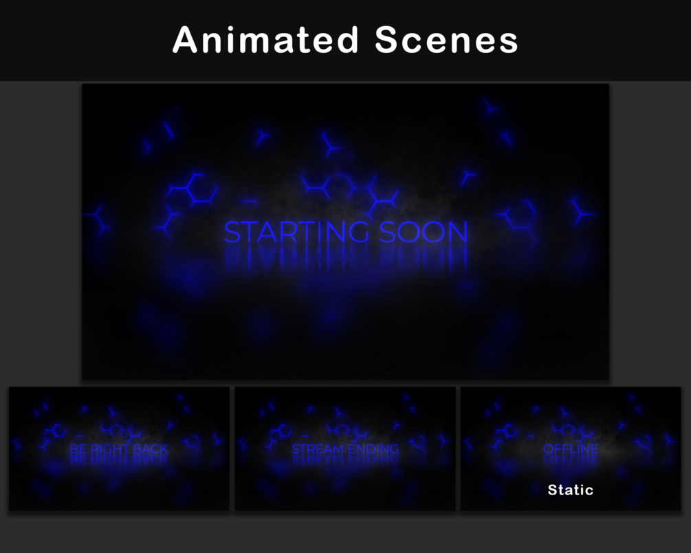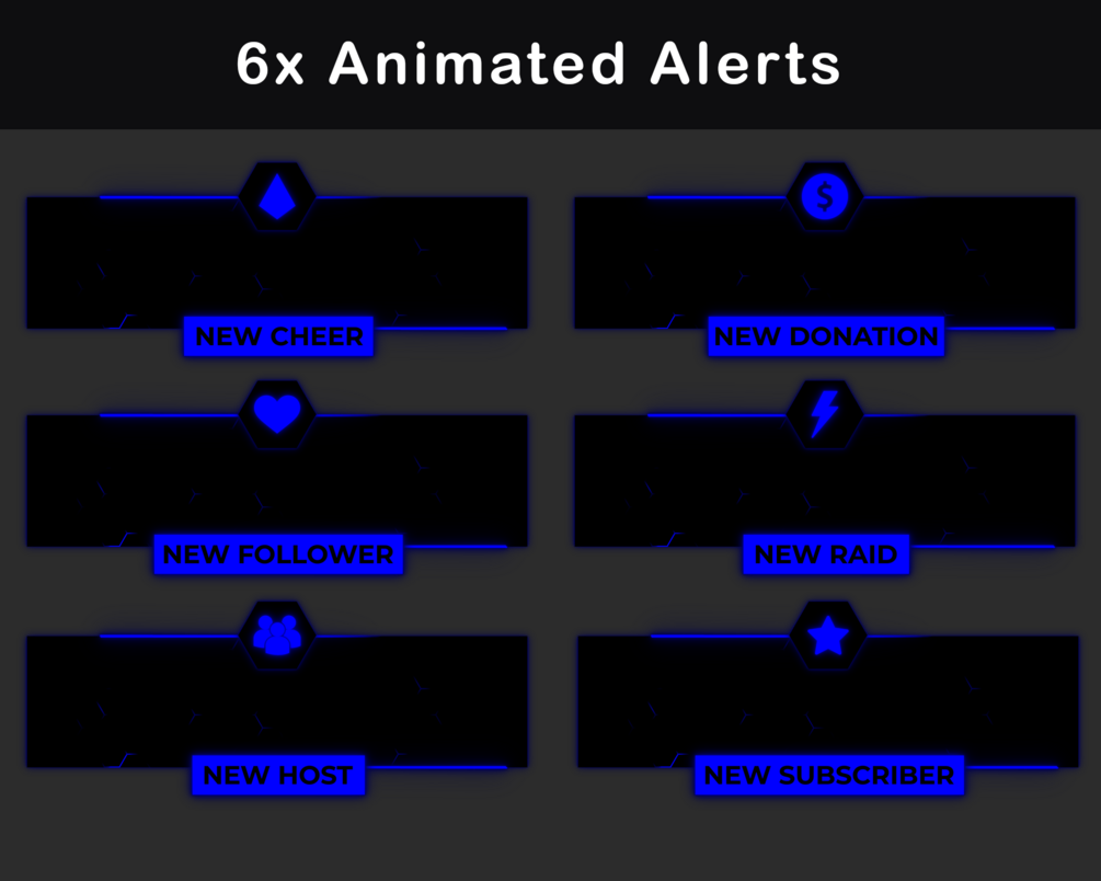 Dark & Blue Twitch Overlay Package | Minimal Animated Stream Package | Alerts, Screens, Panels, Stinger, Chatbox | Dark Theme Stream Overlays
