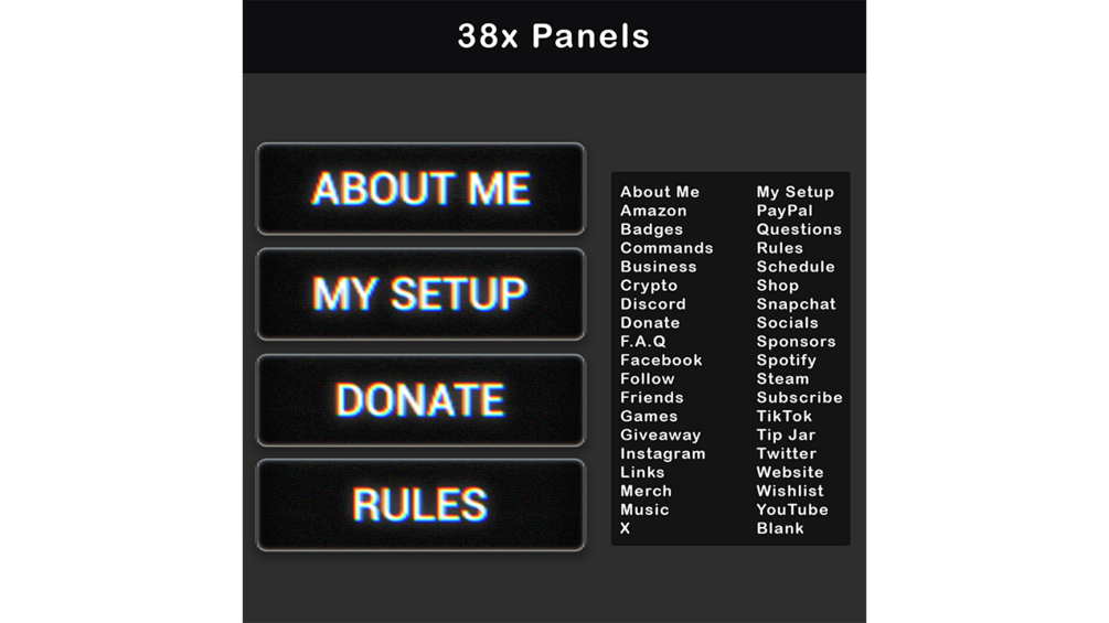Customizable panels for About Me, Schedule, Donate, My Setup, and more. -