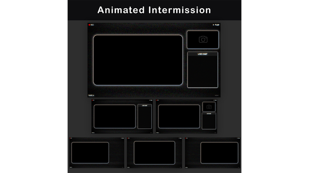 Versatile layouts for gameplay streams, with and without webcam frames and chat boxes. -