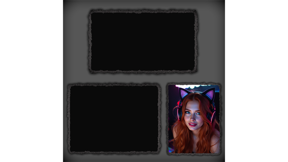 Twitch overlay pack, anime catgirl pack is a unique stream package, featuring a gritty monochrome color palette and a bold anime aesthetic. This animated stream pack blends dark minimalist overlays with glitchy, grain-heavy textures and torn static effects. Its central theme revolves around a provocative anime catgirl, adding personality and visual cohesion throughout your stream.